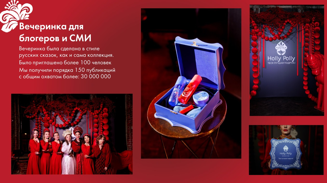 Ирина Фрейд, руководитель отдела маркетинга, PR и Event бренда Holly Polly, представила кейс линейки Russian Girl, где вместо прямого цитирования фольклорных образов, которое исследование СберМаркетинга отнесло к «уходящим» символам, бренд создал живую, игровую эстетику. Названия средств — «Скатертью дорожка», «В тихом омуте», «Дива дивная» — сопровождались сказочными текстами-легендами, а запуск коллекции поддержала креативная рассылка в деревянных шкатулках с лимитированными кокошниками. Результат — охваты более 30 миллионов и более сотни публикаций.