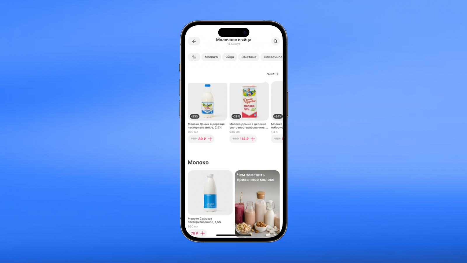 В онлайн-супермаркетах пользователи покупают больше товаров, чем в других e-commerce сервисах. Список покупок может состоять из 20 позиций и больше. Искать каждый продукт, перемещаясь по категориям с мобильного устройства, — сложная задача. Поэтому так важно, чтобы поиск в приложении был на видном месте и мог ответить на разные запросы.