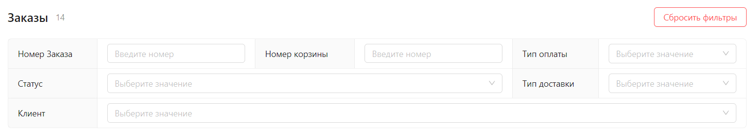 По всем параметрам заказы можно фильтровать в специальной панели. В этом модуле не стали скрывать фильтры в отдельной иконке, чтобы менеджерам было проще работать.
