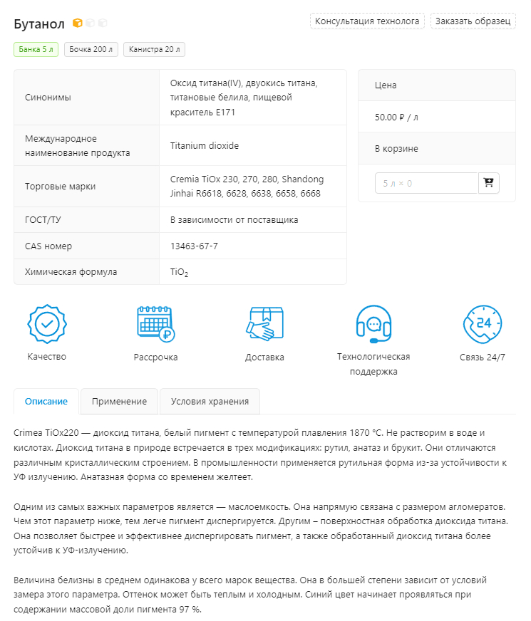 Дополнительно можно открыть карточку товара и изучить там подробную информацию о товаре, а также заказать консультацию технолога и образец.