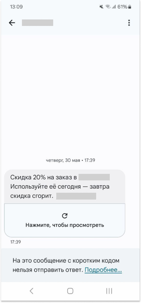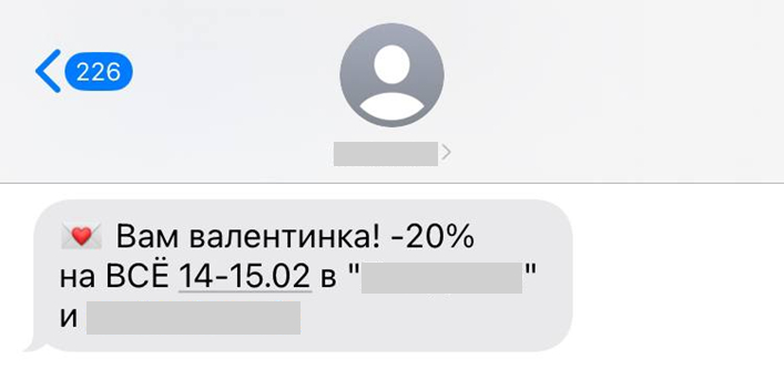 Объем сообщения измеряется сегментами по 70 символов каждый. Минимальная длина — один сегмент, максимальная — четыре сегмента. Оптимально использовать два сегмента, что позволит рассказать про акцию, промокод и скидку, не перегружая текст. В один сегмент поместится общее УТП и описание магазина. В тексте желательно указать размер скидки — это значительно увеличивает отклик, даже если для участия в акции нужно соблюсти различные условия.