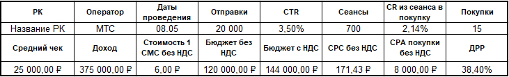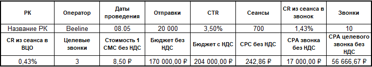 Аналитика кампаний В SMS-сообщениях нет технической возможности измерить коэффициент открытия. Стандартной метрикой, предоставляемой операторами, является отношение кликов по ссылке к количеству отправок. Последующие действия после перехода на сайт и движение пользователей по воронке продаж до непосредственного дохода от сделки анализируются на стороне агентства или рекламодателя. В post-campaign-отчет включены такие метрики, как количество транзакций в интернет-магазине и количество заявок в офис компании через кол-трекинг. Для измерения целевых действий и дохода в приложении используются AppsFlyer и AppMetrica.
