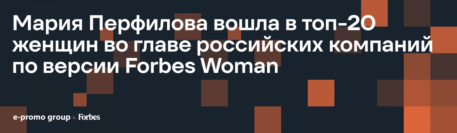 В преддверии Международного женского дня Forbes Woman представил список из 20 женщин во главе крупных компаний, которые работают на российском рынке и входят в ключевые рейтинги Forbes. В топ-20 вошла Мария Перфилова, CEO digital-агентства E-Promo (входит в E-Promo Group).