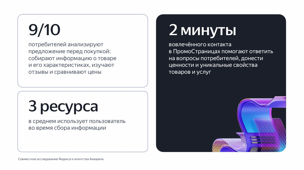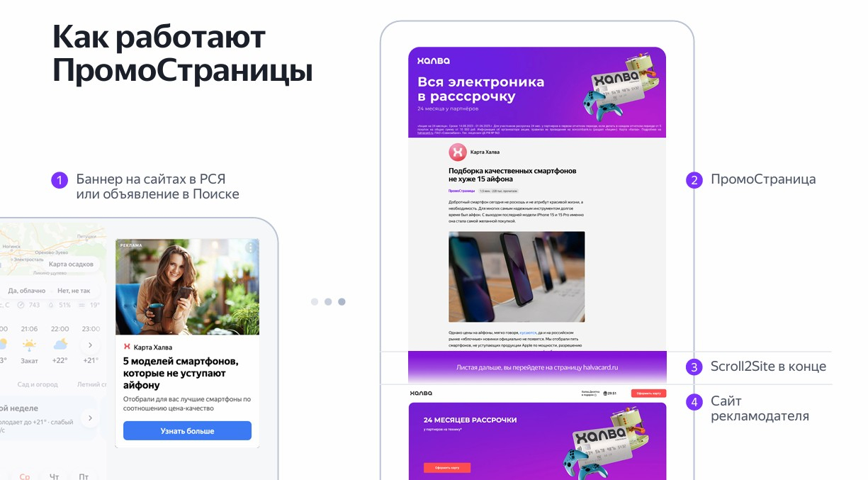 ПромоСтраницы — это сервис Яндекса для создания и размещения рекламных статей, которые отвечают на ключевые запросы и «боли» бизнес-заказчиков. Статьи на ПромоСтраницах размещаются в РСЯ (Рекламная сеть Яндекса) и на поиске Яндекса, где органично дополняют SEO-продвижение. Контент появляется в топе поисковой выдачи без рекламной маркировки. Пользователи сразу получают релевантную информацию без дополнительных шагов.