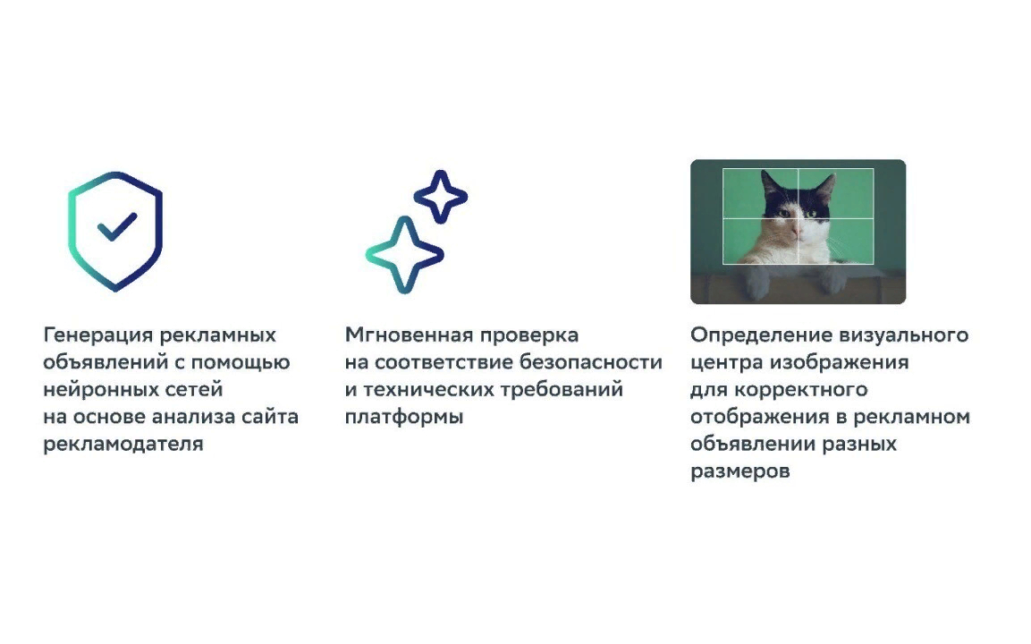 Вы можете писать объявления самостоятельно, либо доверить это ИИ. Искусственный интеллект способен создать заголовок или все объявление, а также оптимизировать изображение для креатива под разные форматы объявлений.
