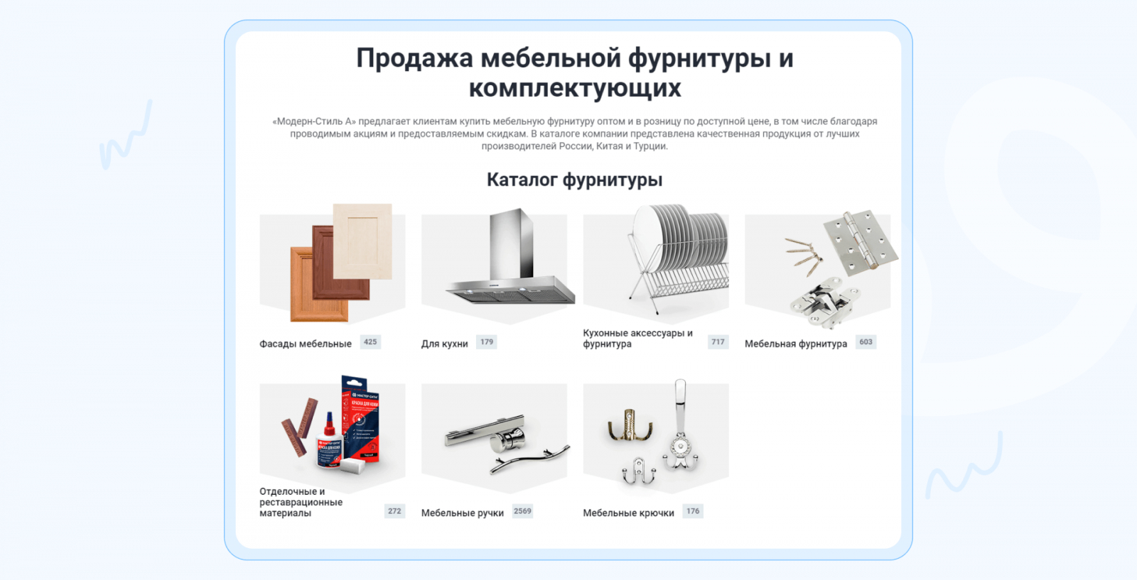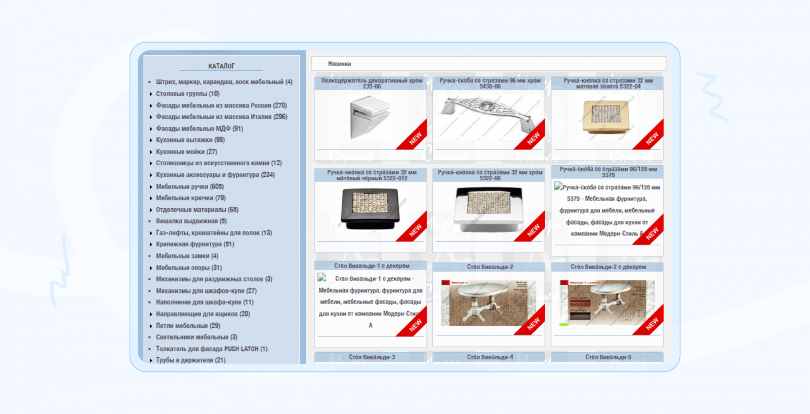 «Модерн-Стиль А» занимается оптовой продажей фурнитуры для корпусной мебели уже 24 года. Заказчик сотрудничает с самыми крупными производителями и поставщиками Турции и Китая без посредников.