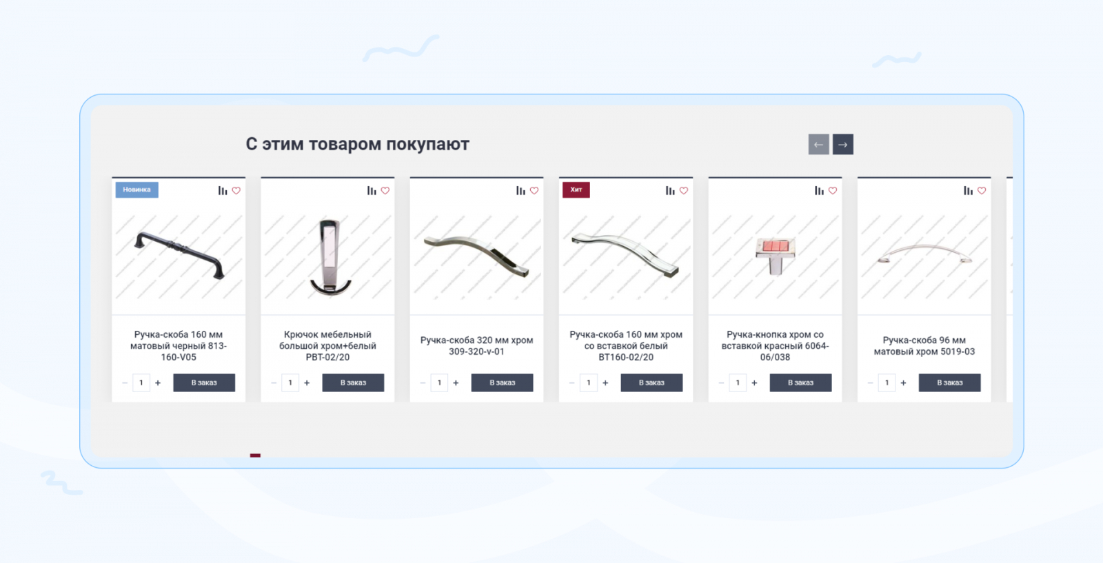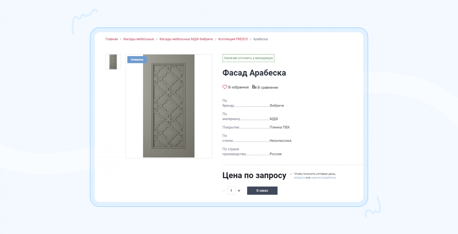 5. Интеграция с 1C. В каталоге постоянно поддерживается актуальный ассортимент, цены и наличие товаров. Если покупатель заказал, например, дверную ручку, это значит, что товар уже точно есть в наличии.