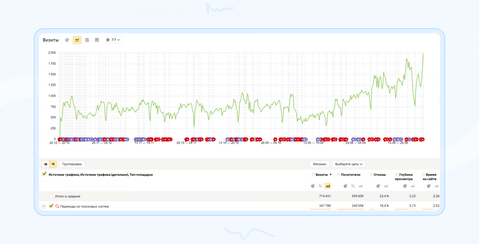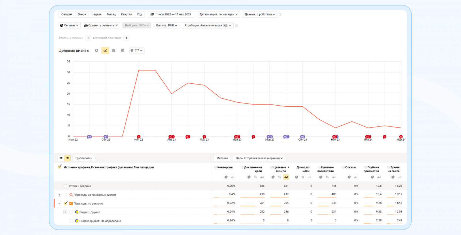 Мы понимали, что для повышения количества заявок нужно использовать все возможные каналы продвижения сайта. Поэтому в июле 2022 года мы перевели клиента на комплексное продвижение.