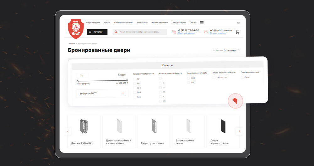 Те, кто устанавливают бронеконструкции и защитное оборудование. Это B2G: армия, МВД, суды, школы, полиция. Это и B2B: банки, ломбарды, какие-то крупные корпоративные заказчики на сейфы, например. И даже B2C: обычный человек, частное лицо тоже может вполне себе зайти на сайт и что-то заказать.