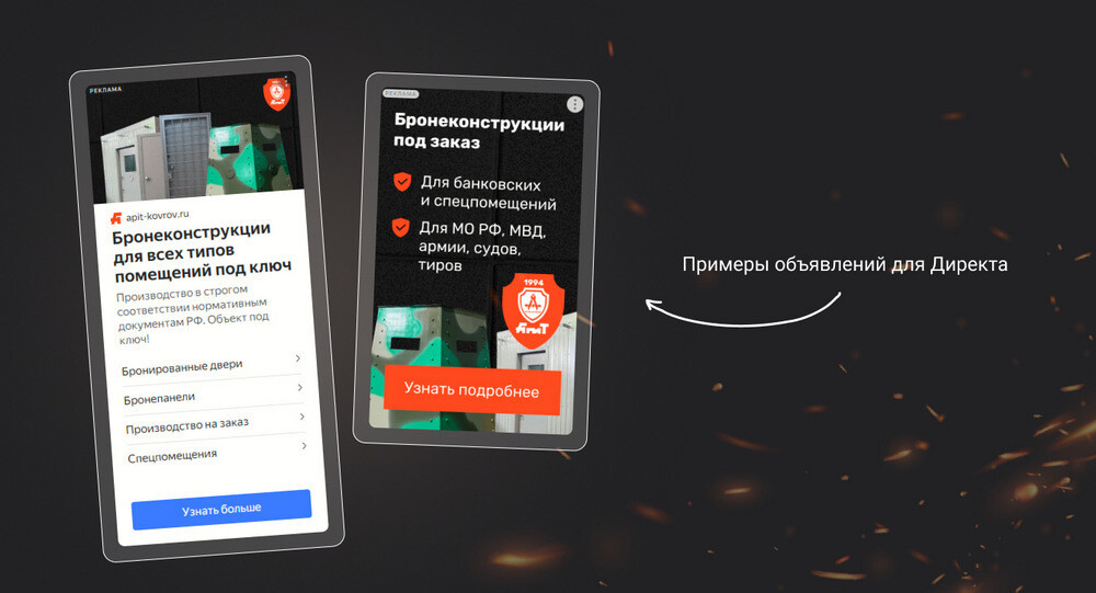 Как мы работали с Директом? Если вкратце, собрали общие запросы по России, собрали запросы конкретно по определенным бронеконструкциям и настроили ремаркетинг по смарт-баннерам.