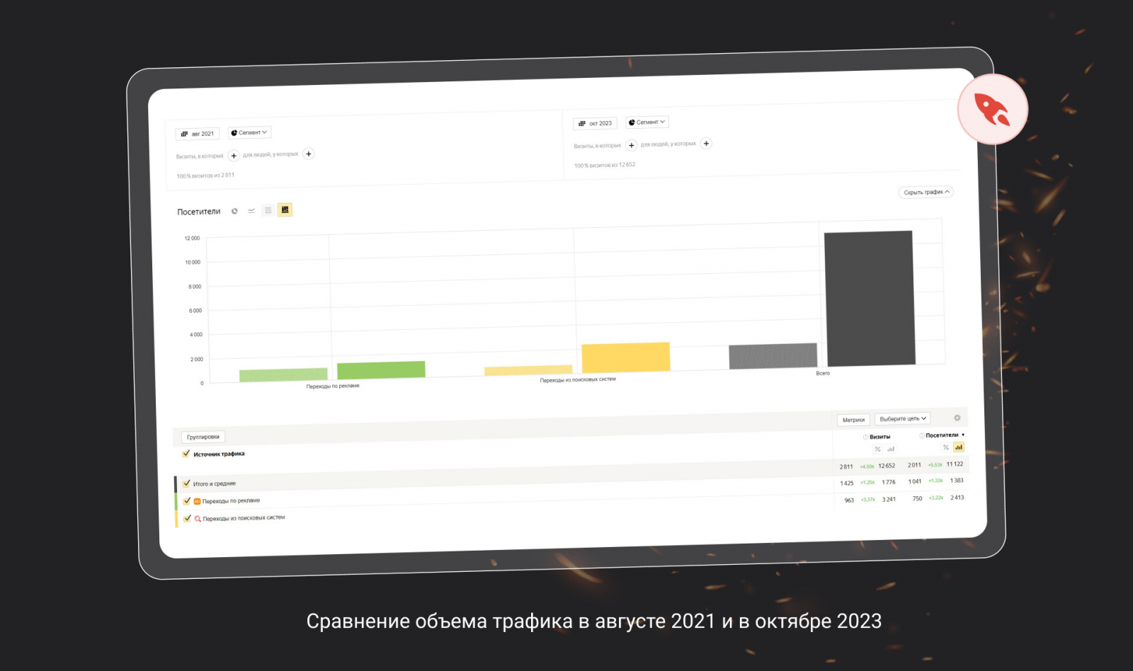 1. Заказчик получил современный сайт, который привлекает трафик. На графике хорошо заметен прирост трафика с июля 2022 г. — это можно объяснить общим повышением спроса на безопасность.