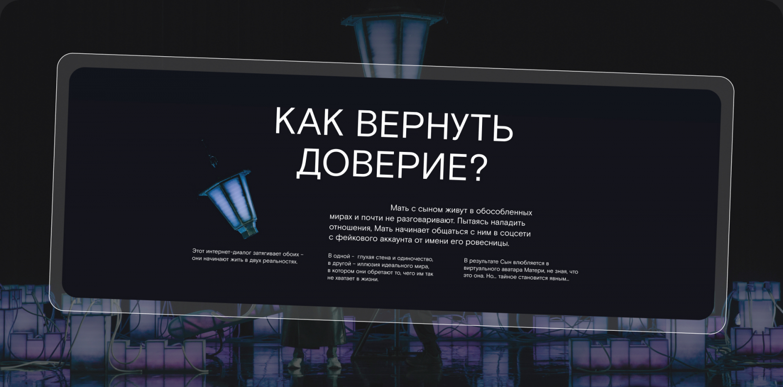 В 2023 году клиент приходит к мысли, что на основном сайте нет возможности раскрыть идеи и концепции каждого спектакля. Особенно это касается премьер: сложно продать билеты, когда люди ничего не знают о спектакле.