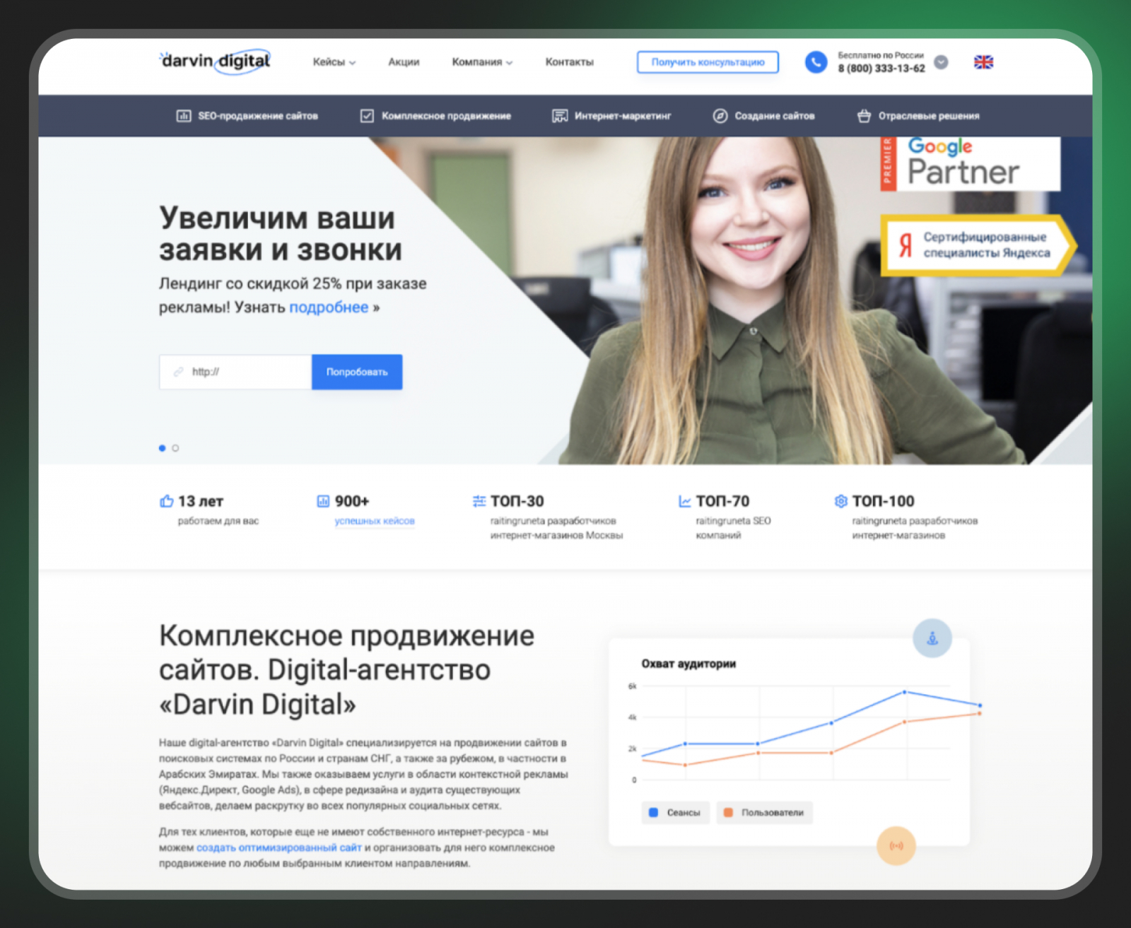 Оставить заявку на SEO-продвижение, аудит, бесплатную консультацию или просто посмотреть, какой классный сайт у нас получился, можно здесь – darvindigital.ru.