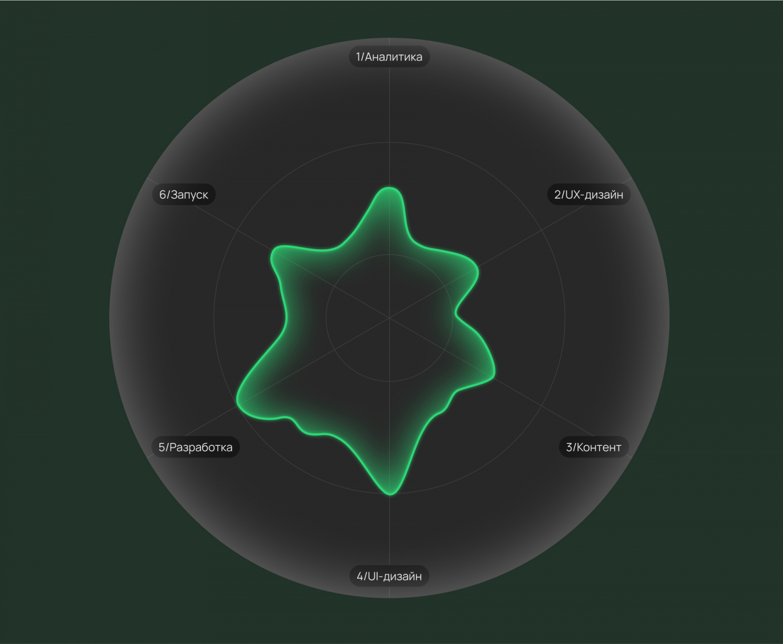 Старый сайт не справлялся ни с одной из этих задач. Поэтому редизайн нельзя назвать просто визуальным обновлением. Это была полноценная продуктовая разработка, в которой участвовали аналитики, разработчики, маркетологи, дизайнеры и копирайтеры. Каждый этап был обязательным: ничего не пропускали, не ускоряли и не упрощали. В итоге всё уложилось в 6 больших блоков.