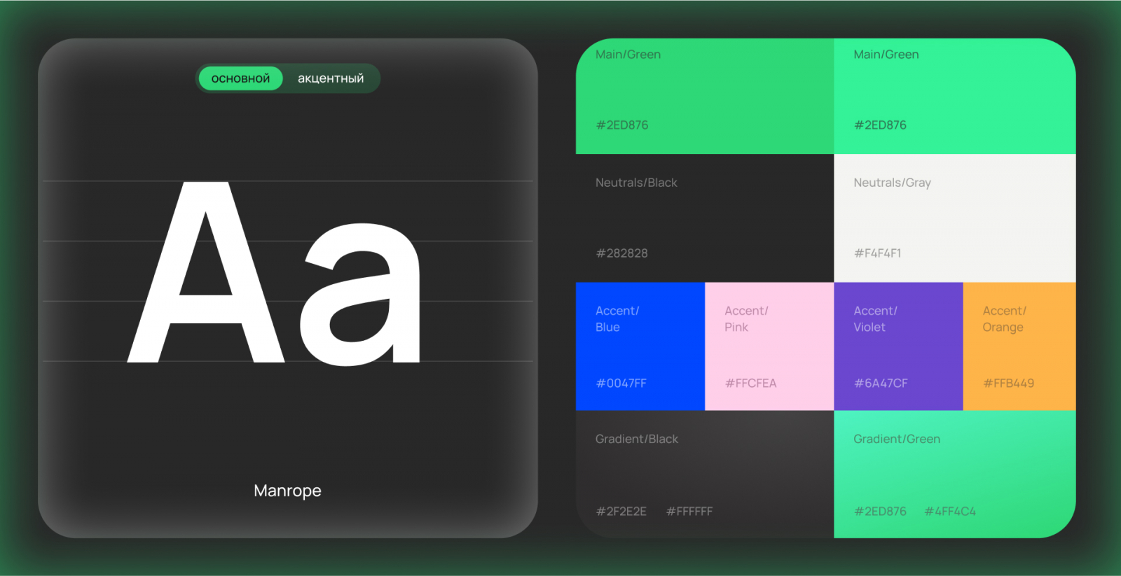 Затем собрали UI-kit. Это системный набор – заголовки, отступы, кнопки, карточки, цвета и иконки.