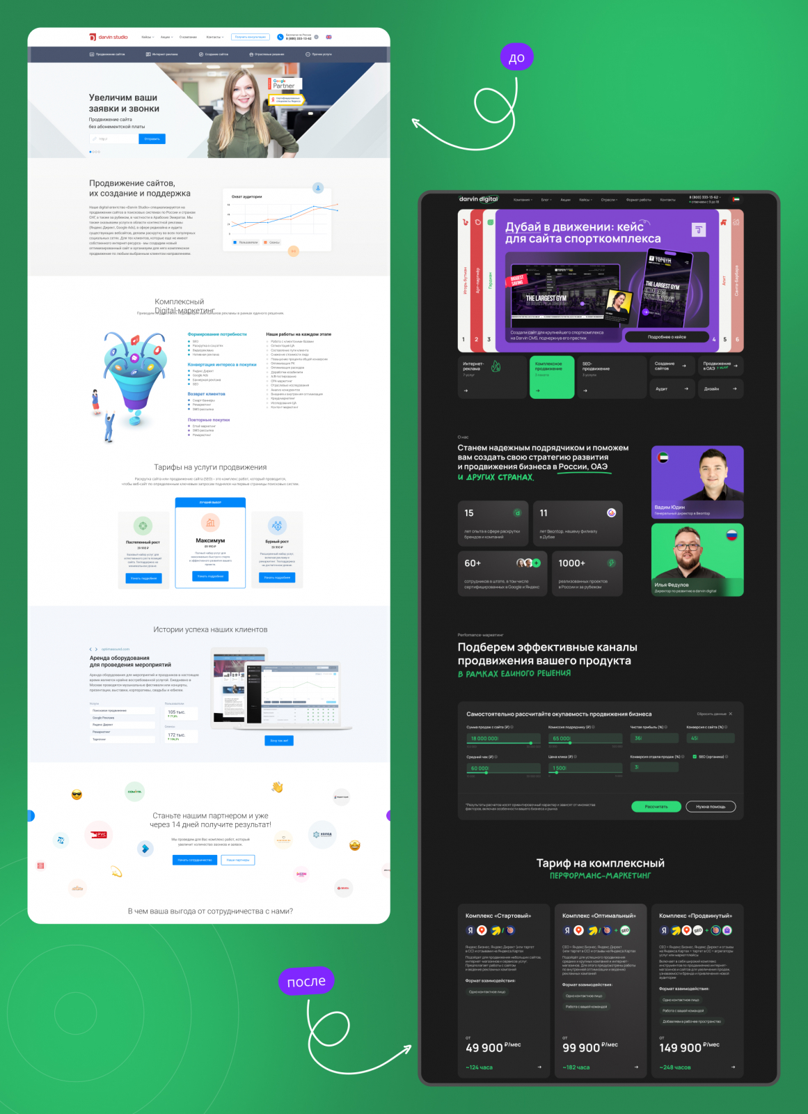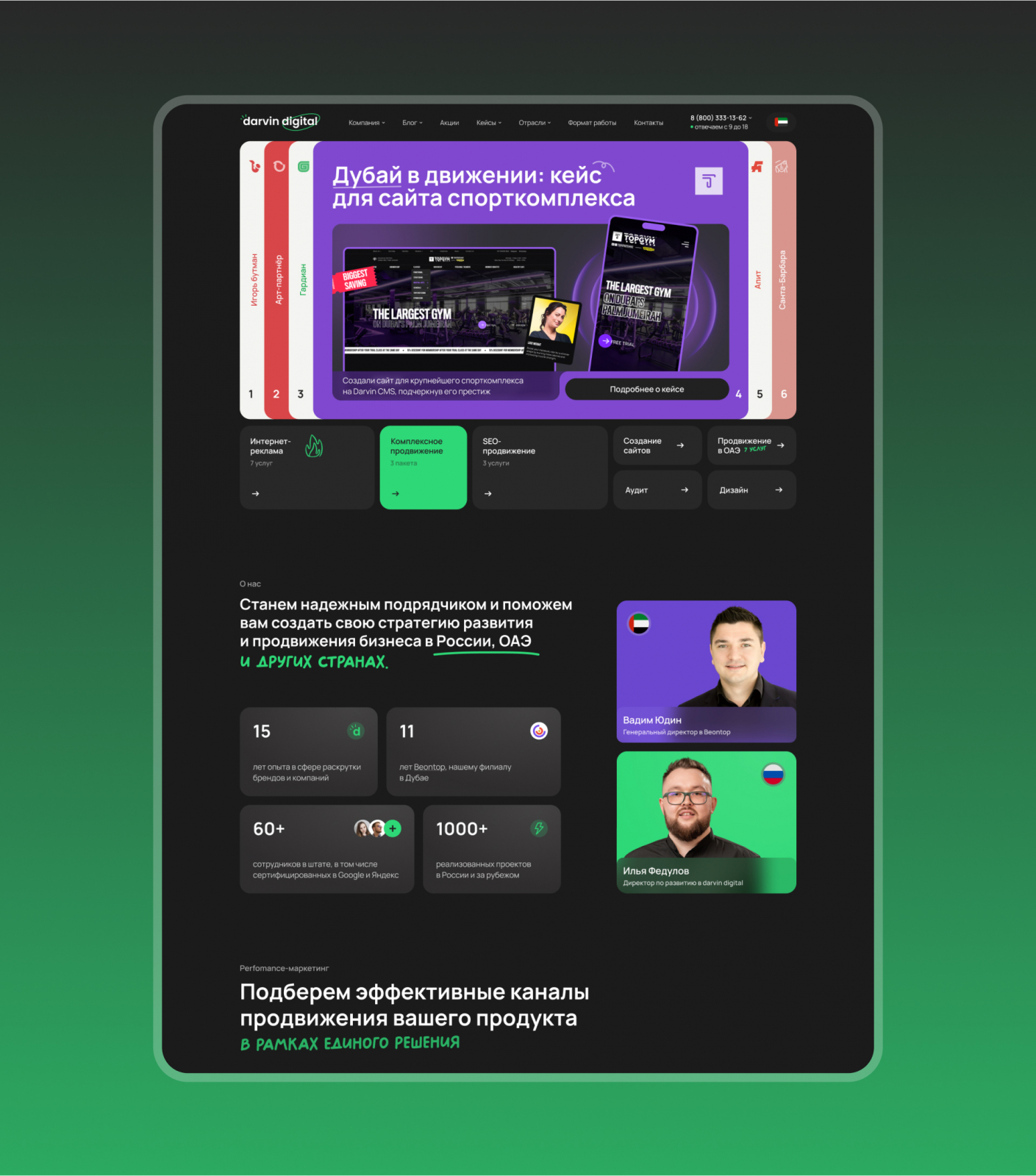Darvin Digital – digital-агентство полного цикла. 16 лет делаем клиентам крутые сайты и продвигаем их, а свой стеснялись показать – переделывали долго, по остаточному принципу: между дедлайнами и брифами. Устаревший дизайн, запутанная структура и много воды в контенте. Решили: пора показать, кто мы такие без «но». Сделали всё как для клиента и увеличили интерес аудитории.
