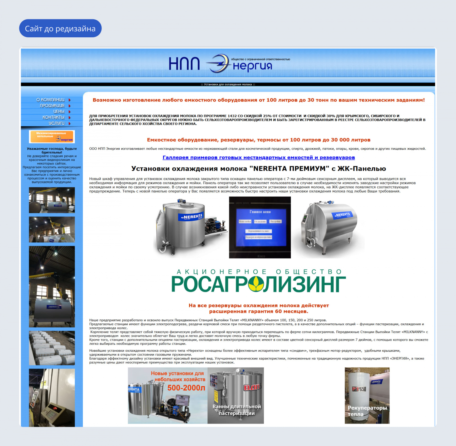 НПП «Энергия» – производитель нестандартных ёмкостей из нержавеющей стали. Работает с аграрными, пищевыми и химическими предприятиями. Один из ключевых продуктов компании – охладители молока открытого и закрытого типов объемом от 200 до 30 000 литров.