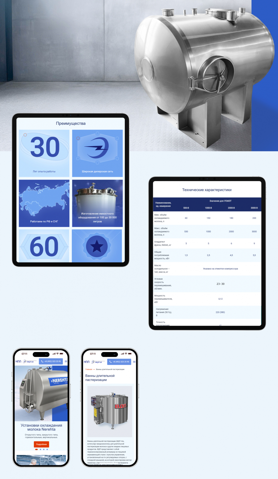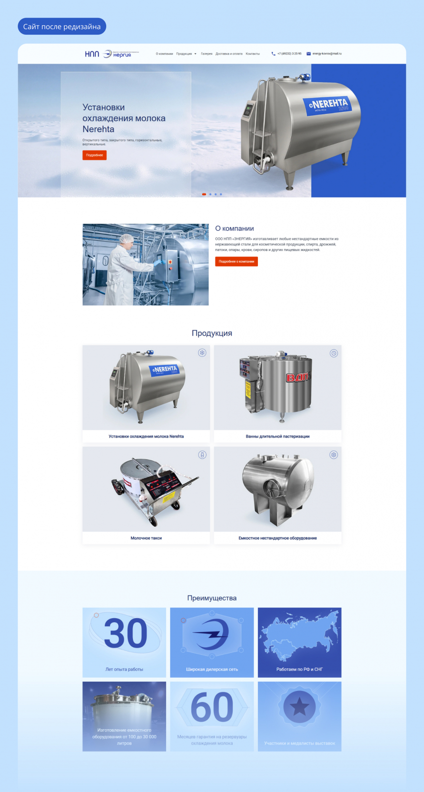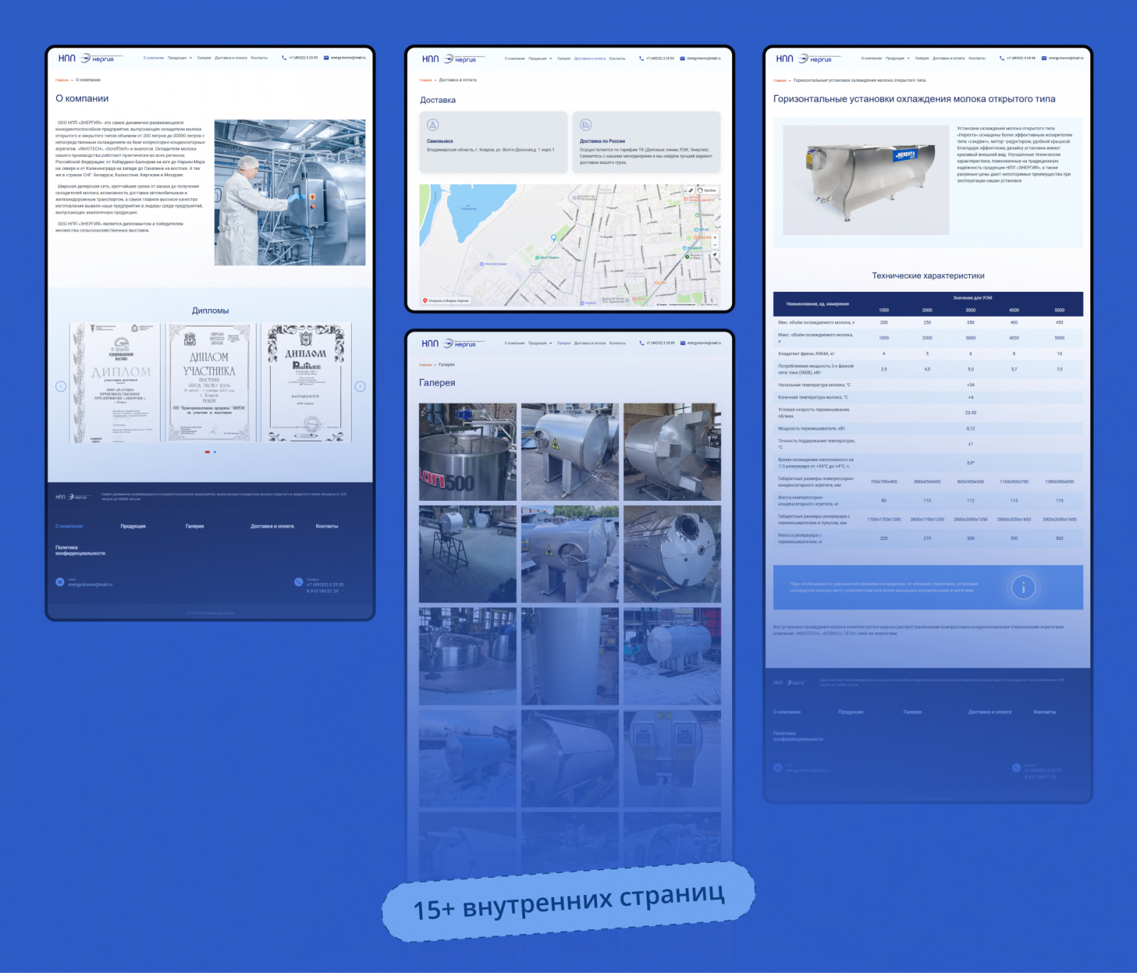 Старый сайт НПП «Энергия» страдал не только от устаревшей структуры, но и от плохих фотографий оборудования. А это критично, ведь компания производит сложную и дорогую продукцию. Клиенты в B2B-сегменте хотят видеть, за что платят, особенно если речь идёт о нестандартных инженерных решениях.