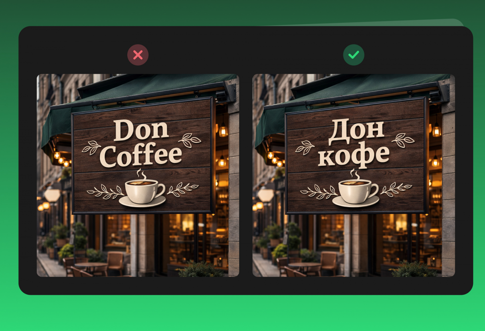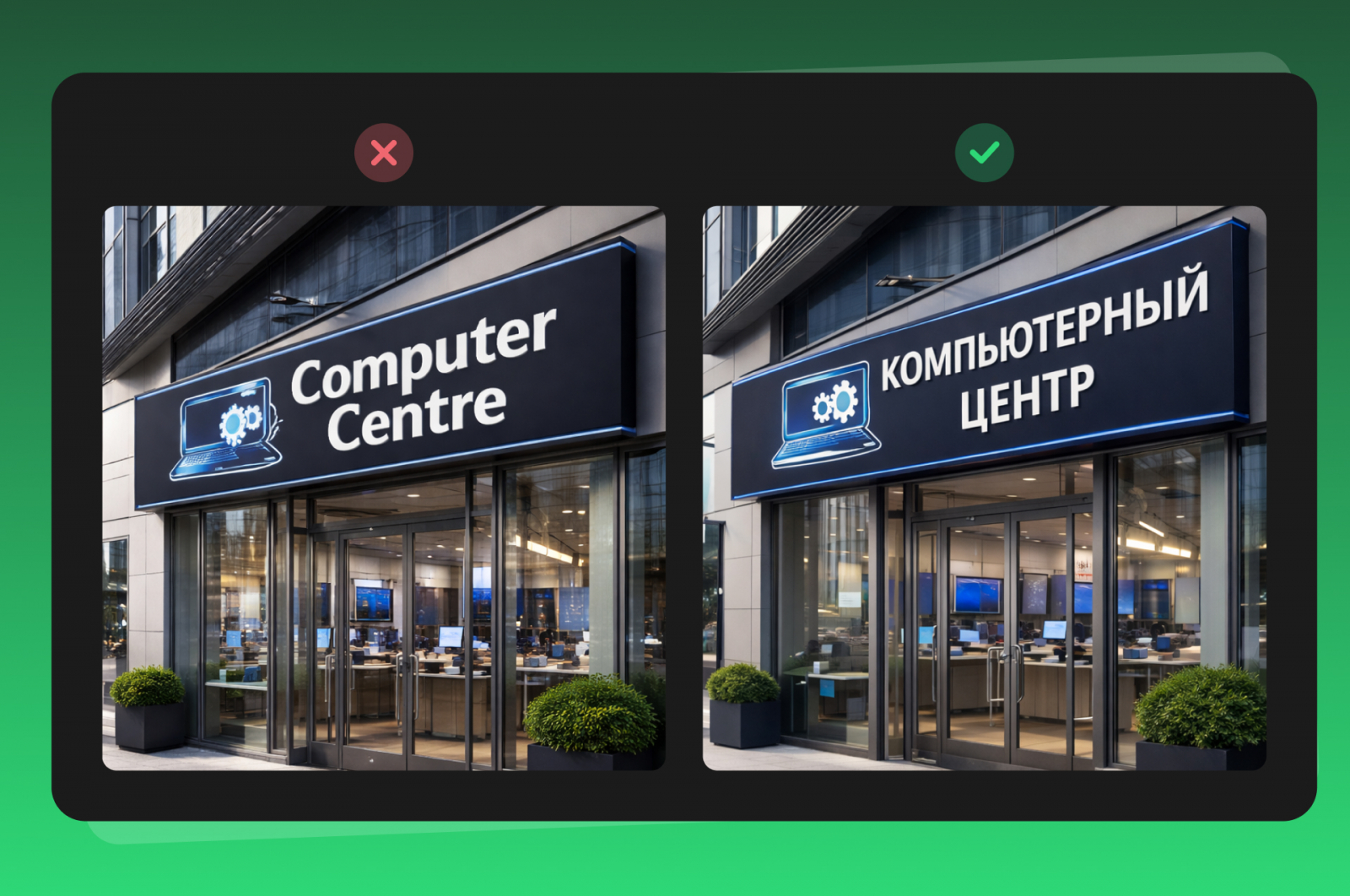 Если у вас есть зарегистрированный товарный знак на латинице, например, Adidas, Nike, Apple или Starbucks, вы имеете право размещать его на вывеске без перевода.