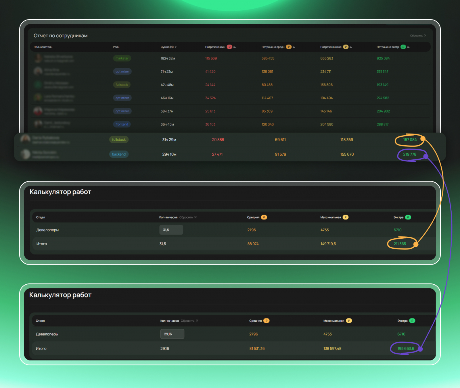 На этом фоне в агентстве и начала формироваться идея другой системы. Нужен был способ смотреть на проект не через усреднённые цифры и ощущения, а через реальные затраты. Чтобы было видно не только то, что задачи выполнены, но и то, сколько реально стоила эта работа.