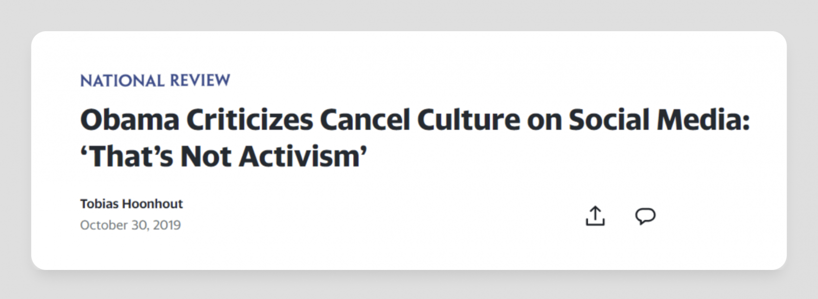 Внимание к тренду начало развиваться в конце 2019 года — во время президентской гонки в США. Феномен культуры отмены стали публично обсуждать политики, и мейнстрим-медиа вслед за ними.