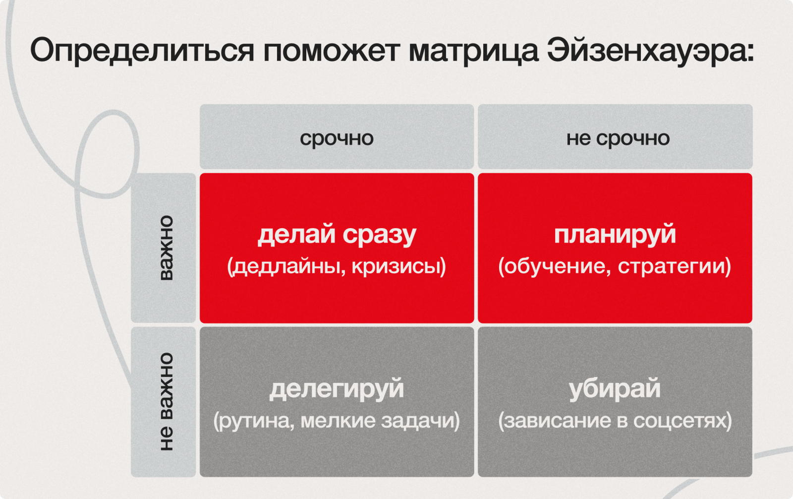 Чтобы правильно расставить приоритеты, для начала задайте себе два вопроса: