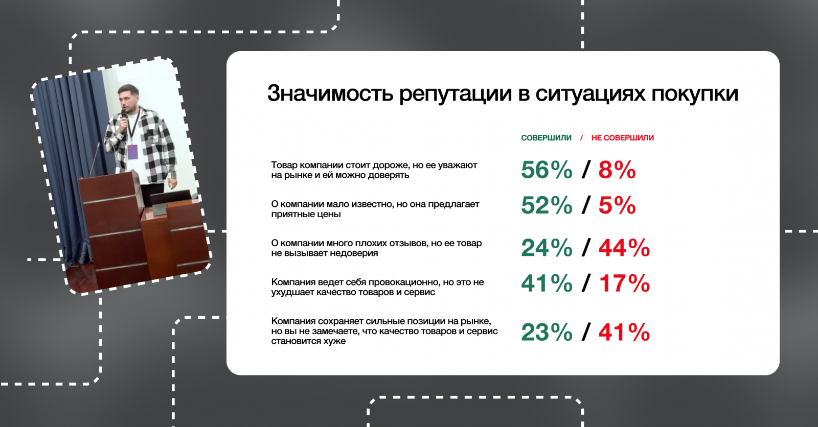 Второй миф: «Мы наняли ORM-специалистов, поэтому репутация должна сразу исправиться». Да, через 3–5 месяцев станет лучше, а хороший антикризис сработает еще быстрее, но многие бренды до сих пор не осознают, что управление репутацией — не разовая кампания. Необязательно каждый день выходить с колонкой в Forbes, но мониторинг, реагирование и контроль ключевых площадок должны осуществляться постоянно.