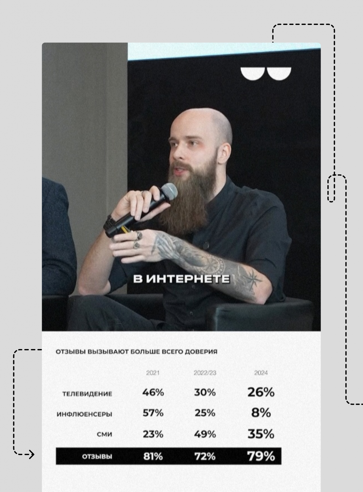 — Совершенно согласен! В начале 2010-х отзывы были единственным ориентиром для потребителей. Вот бренды и боготворили KPI, считали количество публикаций, упоминаний, позиции в выдаче, заказывали отзывы.