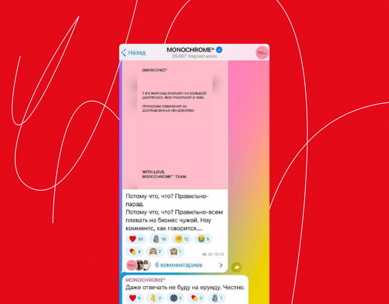 Антикризисная команда. После начала скандала профессиональная предотвратила бы противоречивые комментарии представителей бренда. Вместо хаоса — формирование единой позиции и пошаговые действия в ее рамках. Официальный ответ владельца бренда не занял бы столько времени, а поста в Телеграме Алисы Боха не было бы вообще.