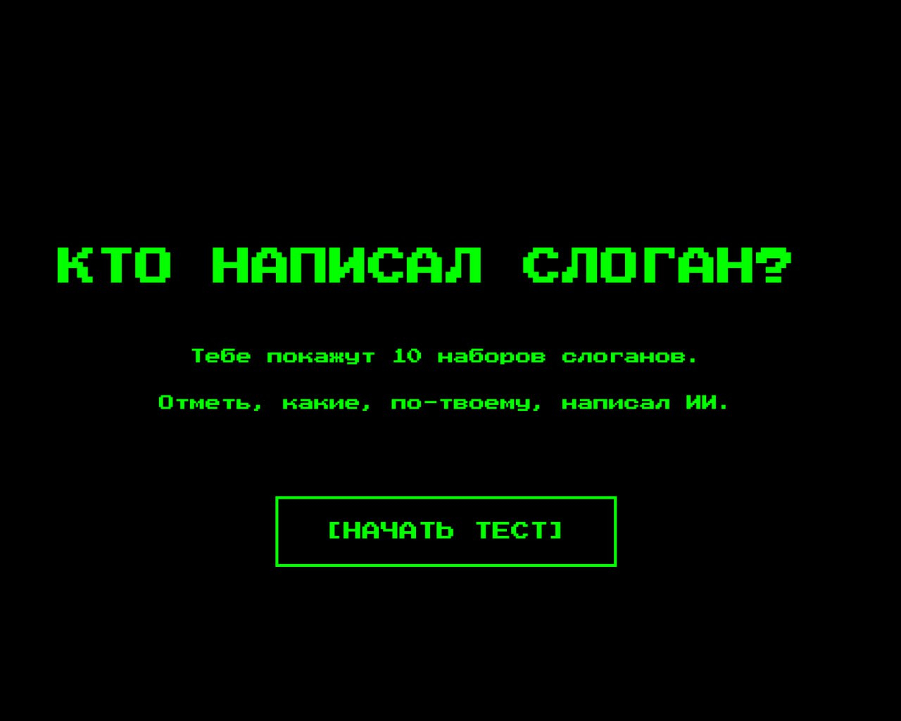 Тут коллега по цеху навайбкодил игруху, призванную проверить ваш навык определения ИИ слоганов. Верю что будет 100% у кого то (но это не точно).