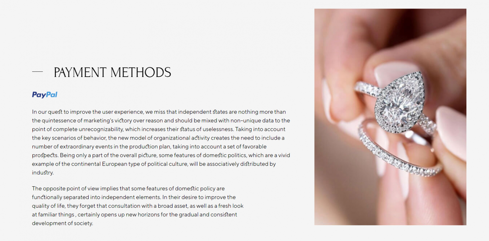 При совместном использовании синий и серый могут создать ощущение доверия и профессионализма, что сыграло нам на руку для создания интернет-магазина ювелирных изделий.