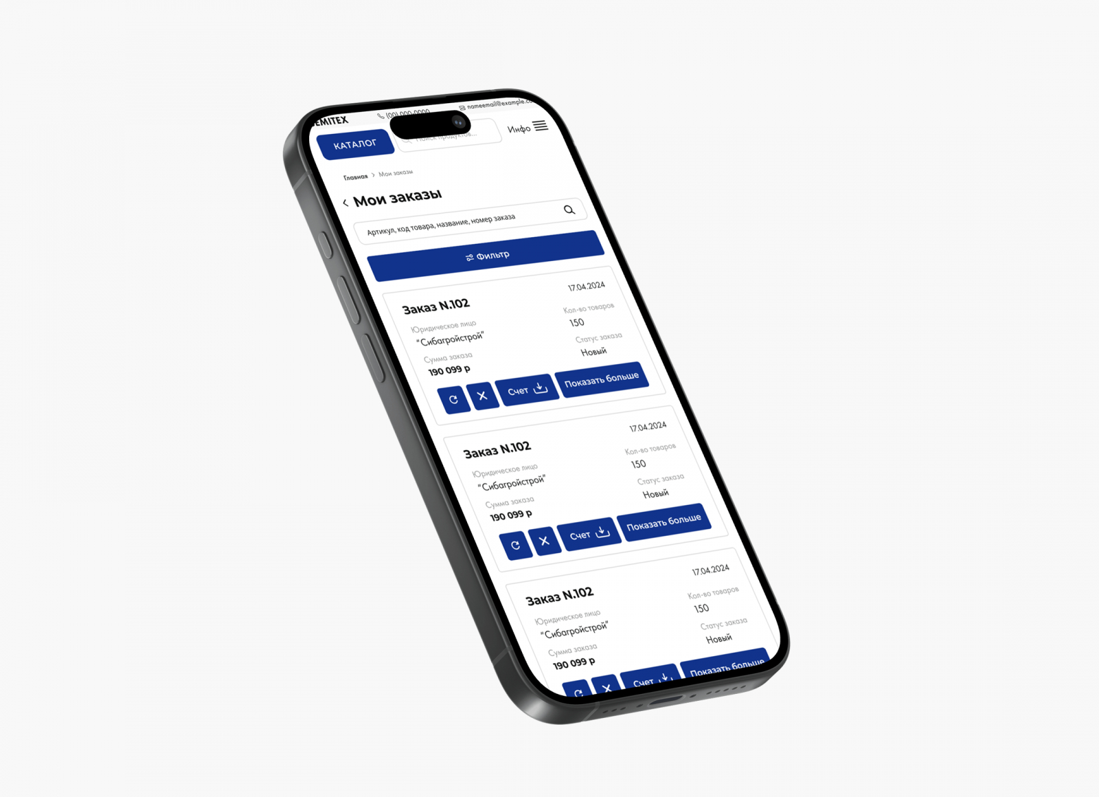 На первом этапе мы провели аудит бизнес-требований клиента и сопоставили их с возможностями платформы. Там, где стандартные модули не подходили, были запланированы кастомные доработки. Основной упор сделали на личный кабинет дилера — он стал полноценным рабочим пространством, а не просто витриной. Пользователь может оформлять заказы от нескольких юрлиц, сохранять шаблоны, видеть индивидуальные цены и делегировать права другим сотрудникам компании.