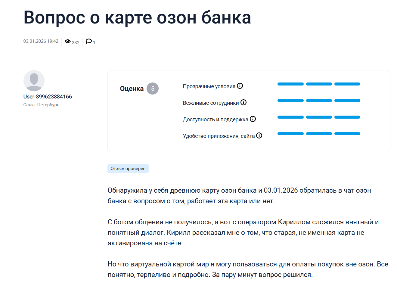 Для банка такие отзывы чреваты подозрениями в неорганической активности. Это тот скользкий момент, когда высокая лояльность к клиентам может вызвать репутационные издержки. Поэтому стоит порекомендовать банкам и площадкам немного ужесточить правила зачета пользовательского опыта для получения бонусов, а банковским клиентам – быть искренними и делиться положительными историями от души.
