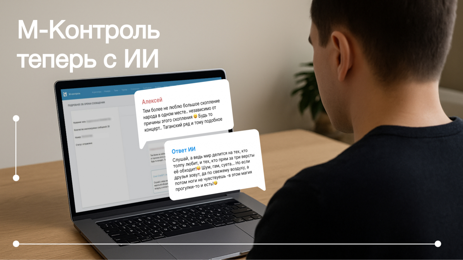 Чтобы этого избежать, мы внедрили в сервис искусственный интеллект. Теперь М-Контроль не только отслеживает сообщения, но и анализирует тематику обсуждений. На основе этого ИИ формирует уместные и естественные ответы, которые публикуются от имени аккаунта и органично вписываются в диалог.