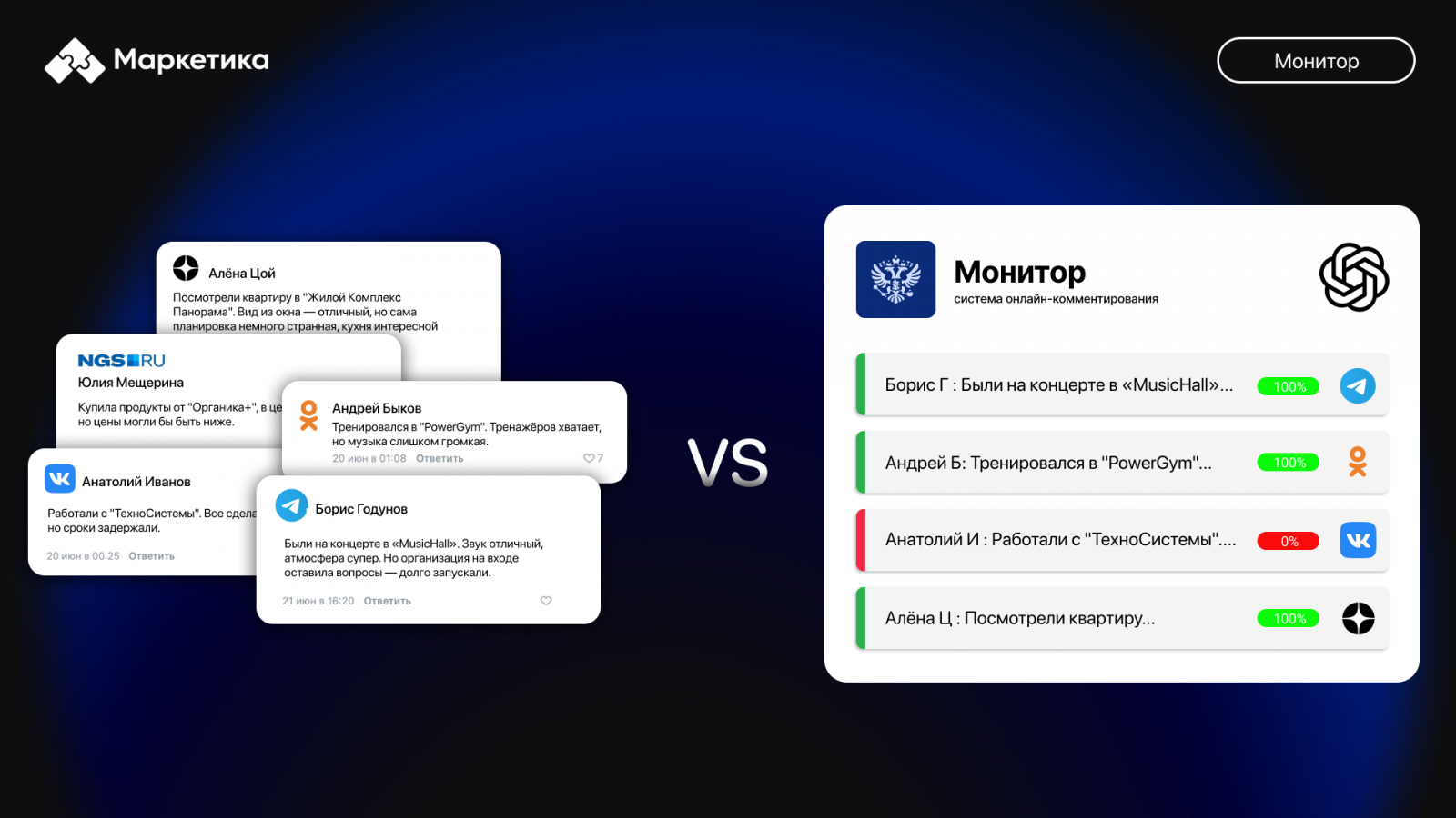 - Экономить время с помощью ИИ. Нейросеть анализирует контекст публикации, определяет тональность и предлагает готовый комментарий. Сотруднику остаётся проверить и опубликовать ответ от лица компании.