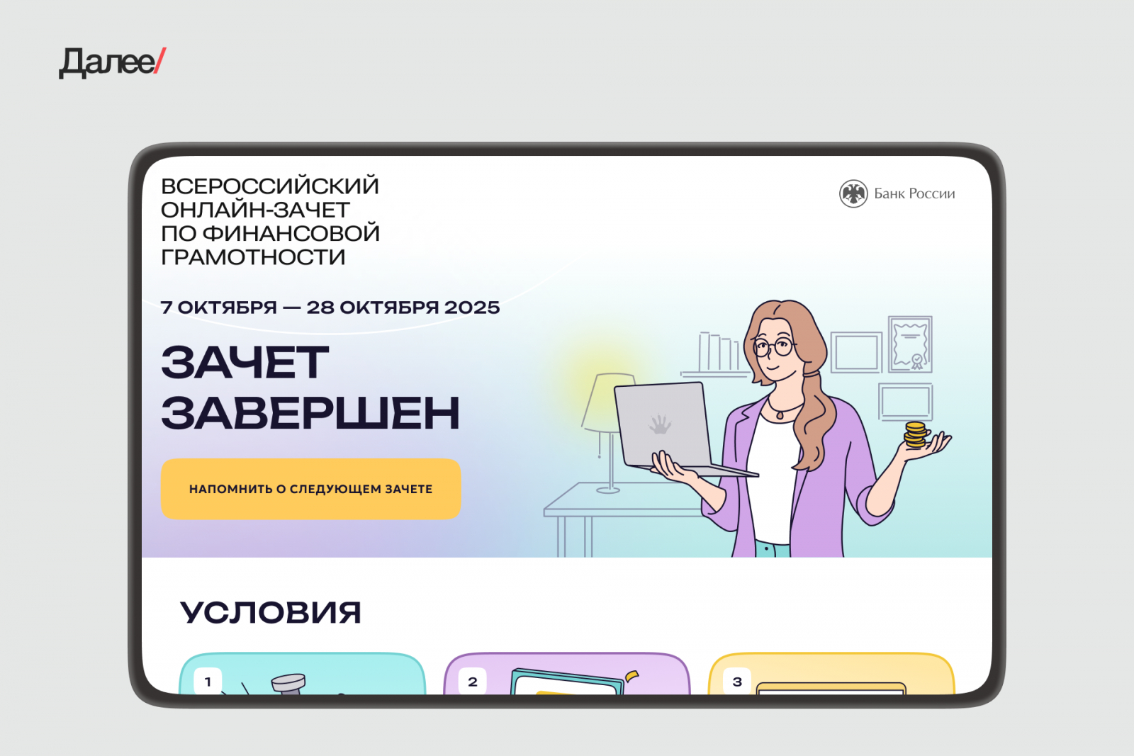 Впервые Всероссийский онлайн-зачет по финансовой грамотности прошел 8 лет назад. После чего стал ежегодной инициативой, в которой Далее участвует с 2021 года. Проект буквально растет на наших глазах и охватывает все большее количество людей.