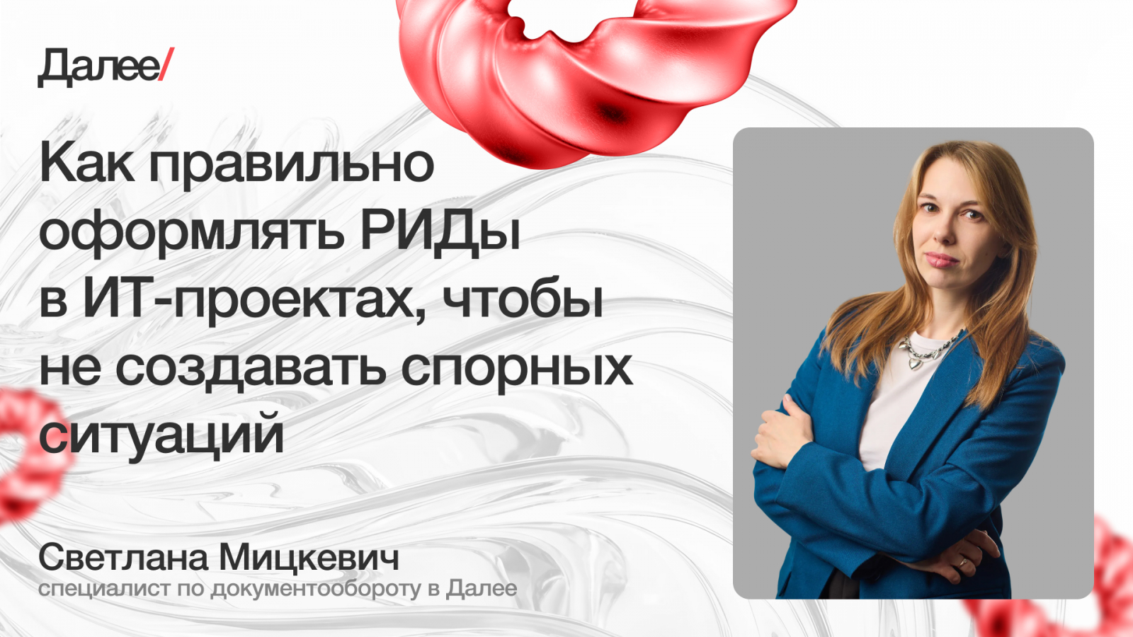 Меня зовут Светлана Мицкевич, я занимаюсь документооборотом в веб-продакшене Далее. В этой статье вы получите подробный гайд о том, как выявить и оформить РИДы.