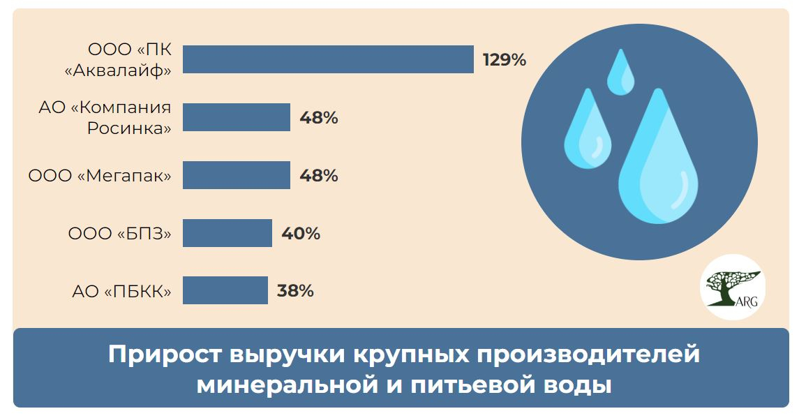 Внутреннее производство минеральных и питьевых вод в России в прошлом году выросло: объем выпуска продукции в натуральном выражении был на 4,5% больше, чем по итогам 2021 года. Позитивные тенденции демонстрировали и финансовые результаты компаний-производителей. Среди 80+ крупных компаний, работающих на данном рынке, у 90,2% выручка от продаж в 2022 году увеличилась. При этом 20,7% компаний, вошедших в мониторинг, увеличили выручку более чем на 1 млрд. руб.
