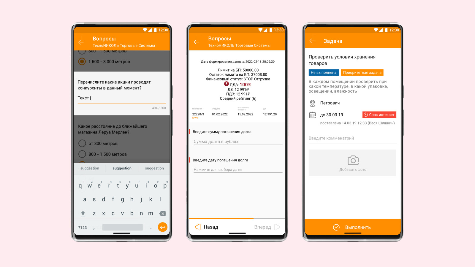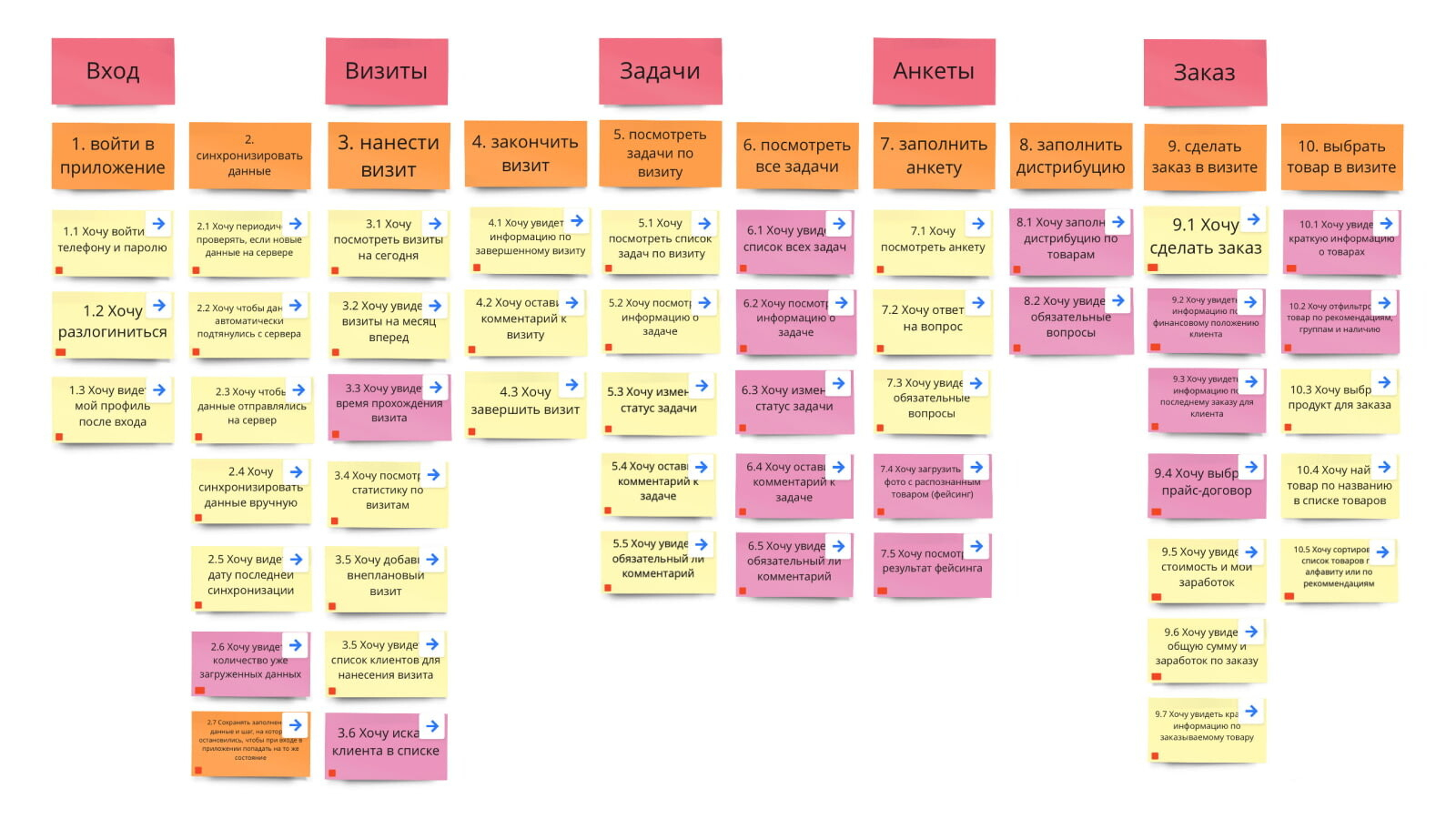 Мы начали работу с аналитики: посмотрели карту экранов в коробочном приложении, выделили все его минусы и выяснили, какие экраны необходимо добавить в новое приложение. MVP подготовили за три месяца. Ключевая его функция — фиксация визитов. Это посещение магазинов торговыми представителями.