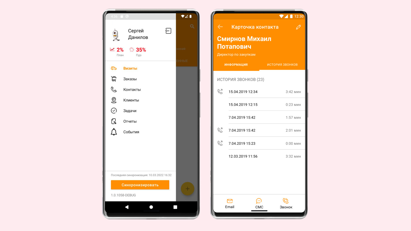 Как и в случае с разработкой приложения для строительной компании ПИК, автоматическая синхронизация нам не подошла, поэтому для ускорения процессов мы выбрали ручную синхронизацию. Получилось так: утром сотрудник приходит в офис и вручную синхронизирует данные, днём работает в офлайн-режиме в магазинах, а вечером возвращается в офис и снова синхронизирует информацию.