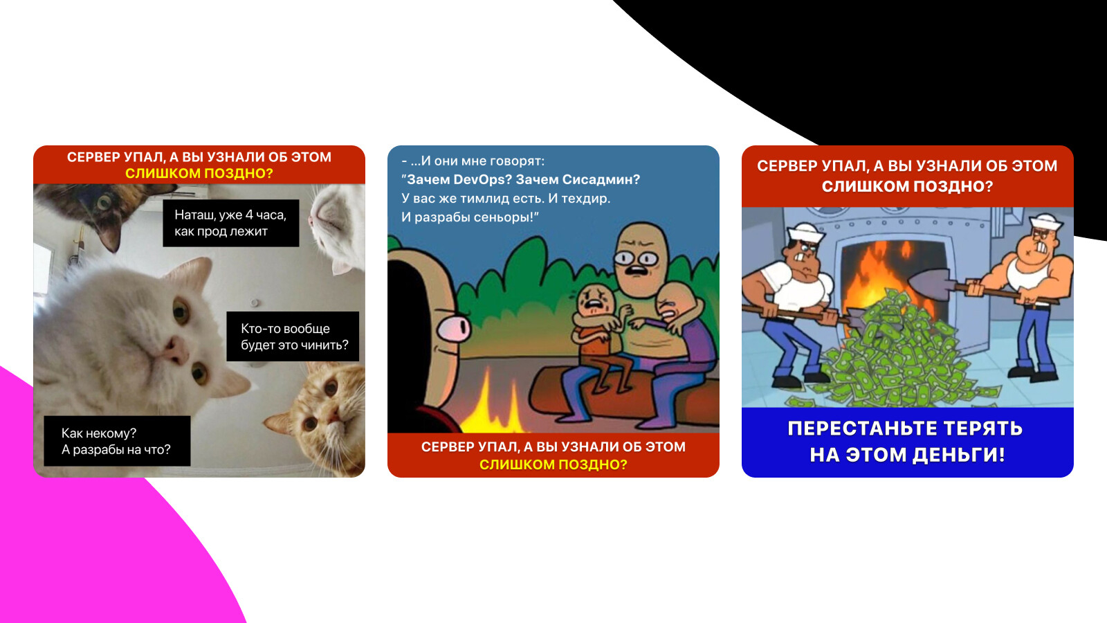 Если мониторинг не настроен, о поломке компания узнает двумя способами: случайно наткнувшись на нее, либо получив отзыв от озлобленного клиента.