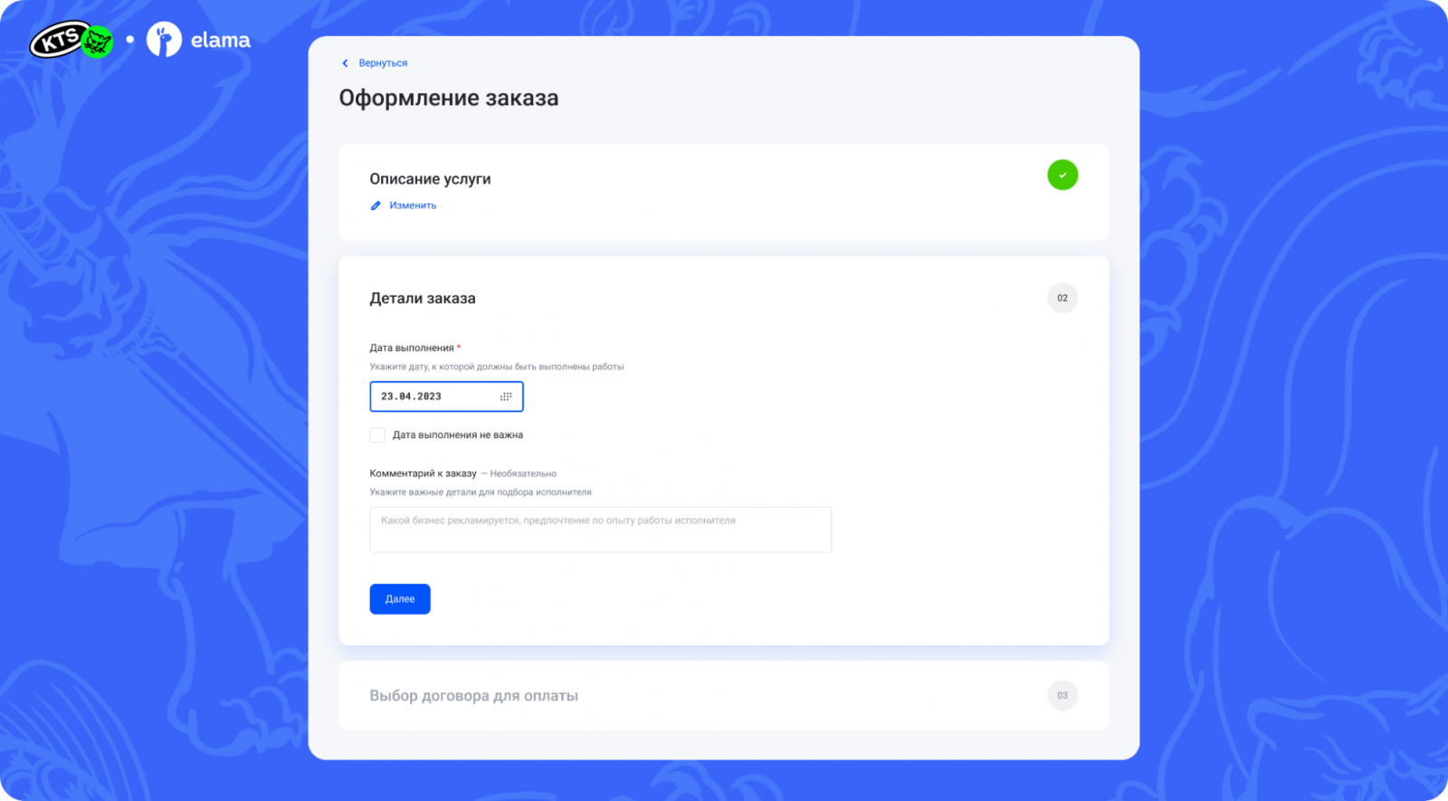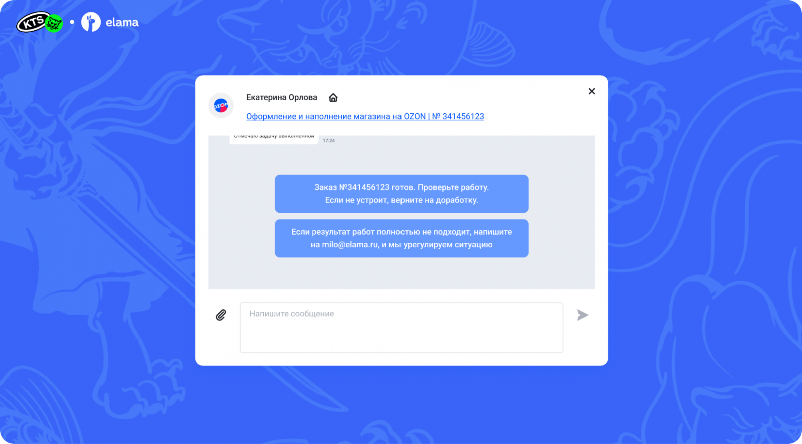 Заказчики могли выбрать любую услугу из списка с фиксированной ценой либо создать свою кастомную. Обязательным пунктом было указать номер телефона для связи. Служба Заботы общалась с заказчиком не в чате на сайте, а за пределами биржи — в WhatsApp и Telegram.