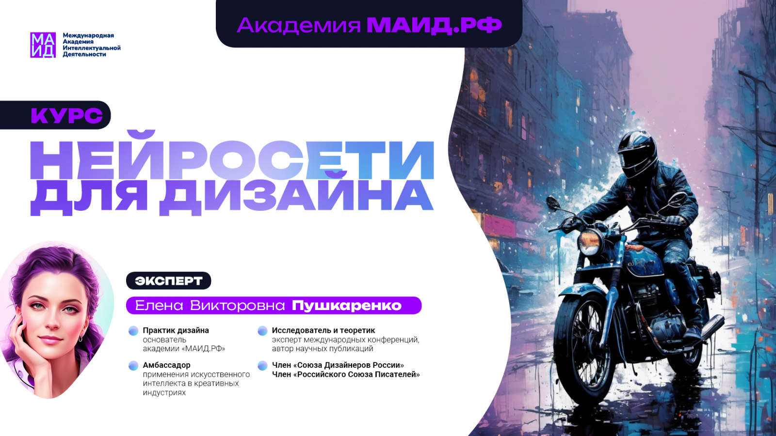 Базовый уровень — уровень «Джуниор» на курсе «Нейросети для дизайна» магистранты успешно завершили. Двигаемся дальше! «Дизайнер в ответе за все шероховатости, которые возникают у потребителя при взаимодействии с продуктом», — подводит итоги жирной чертой Елена Викторовна Пушкаренко, основатель и наставник Академии МАИД.РФ.