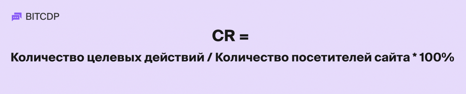 CR = Количество целевых действий / Количество посетителей сайт * 100%