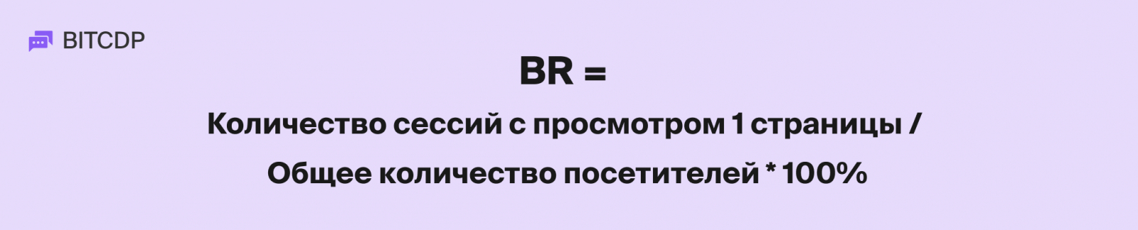 BR = Количество сессий с просмотром 1 стр / Общее количество посетителей * 100%
