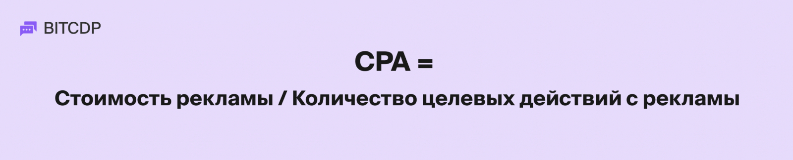 CPA = Стоимость рекламы / Количество целевых действий с рекламы