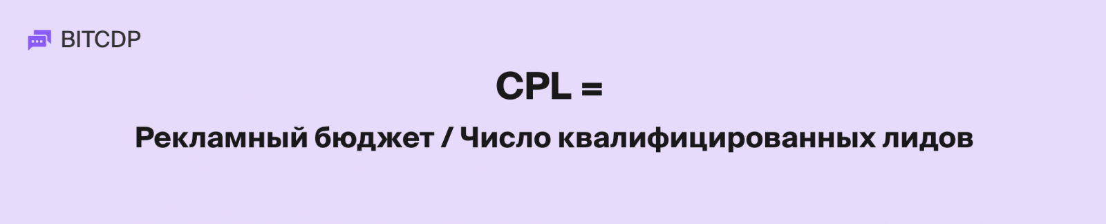 CPL = Рекламный бюджет / Число квалифицированных лидов
