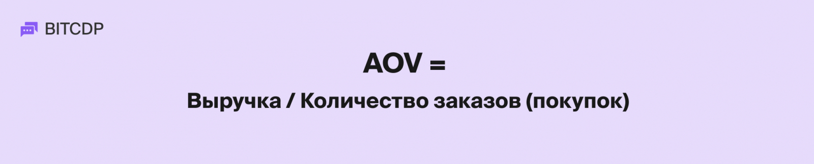 AOV (средний чек) - метрика, которая показывает среднюю сумму заказа / покупки клиента.