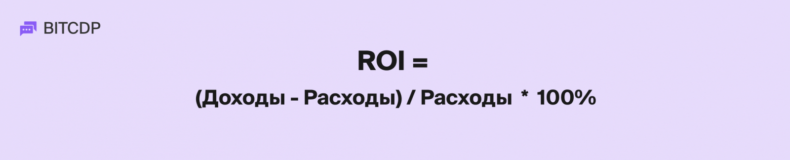 ROI = (Доходы - Расходы) / Расходы * 100%