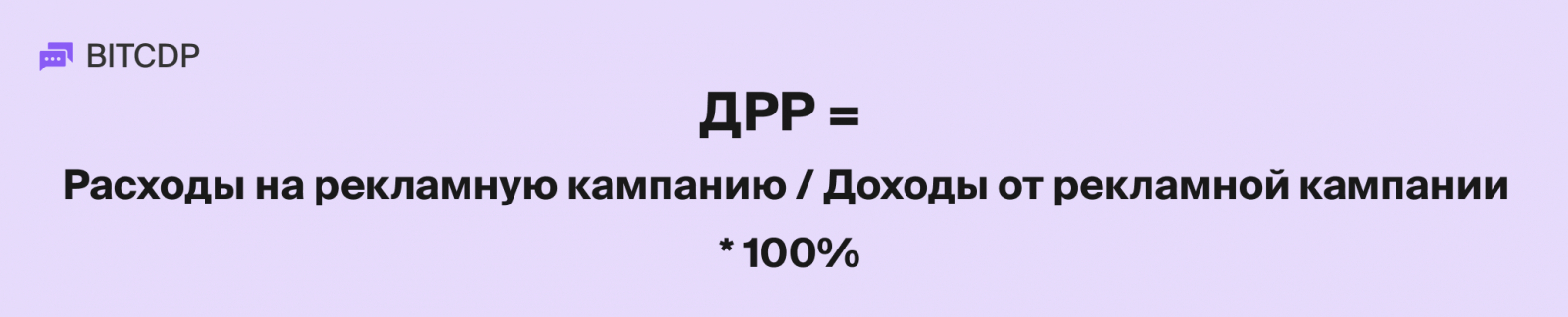 ДРР = Расходы на рекламную кампанию / Доходы от рекламной кампании * 100%
